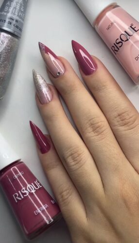 Burgundy and dark plum colors are elegant and stylish for Valentine’s Day. These shades are perfect if you prefer a more simple and classy look.