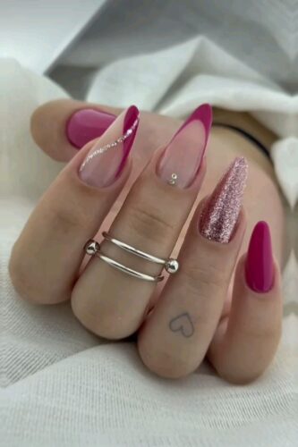 Rose gold is both glamorous and romantic, making it a perfect choice for Valentine’s Day nails. Add rose gold glitter to the tips of your nails or use it all over for a shiny look.
