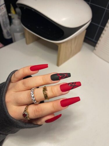 For a bold and edgy look, try black and red nails. You can have black nails with red hearts or a fading design that mixes the two colors.