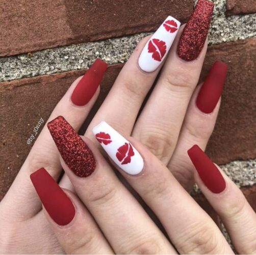 Red nails are timeless and perfect for Valentine’s Day. Choose a rich, shiny red polish for a classic look or try a matte finish for a modern style. You can also add a bit of gold or silver glitter to one or two nails for extra sparkle.